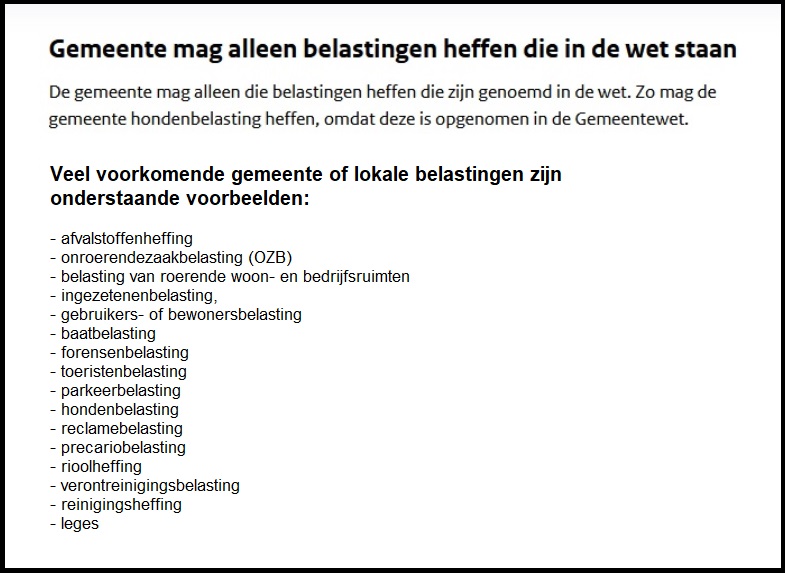 Zie hieronder alle belastingen die U als huurder kunt verwachten rechtstreeks van de Gemeente (zowel in het blauw of zwart geschreven van de printscreen) of doorgestuurd kunt krijgen van uw verhuurder aan U: